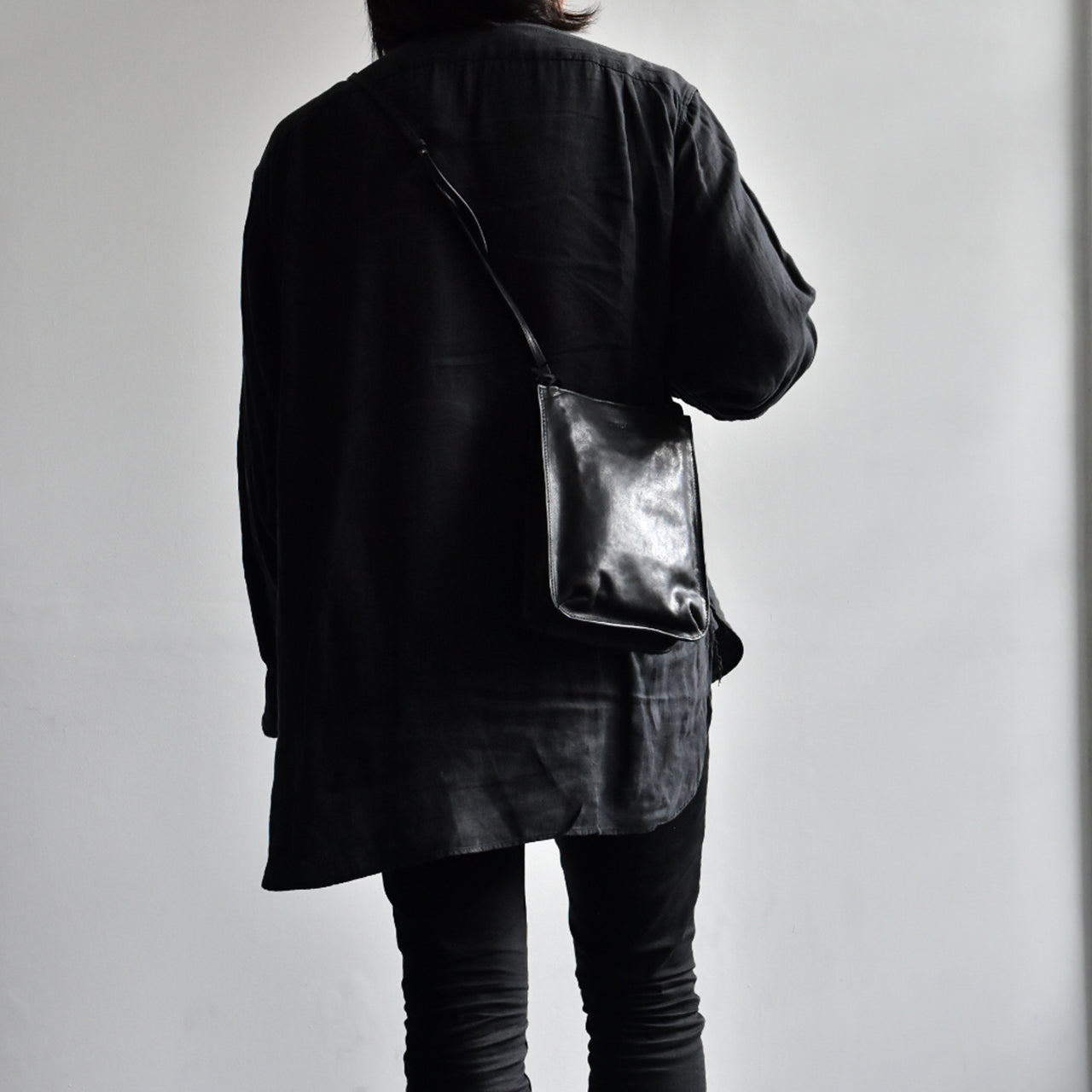 イタリアトスカーナ地方にて 1980 年創業のベジタブルタンニング専門のタンナー「Orice」社のレザーを使用。 革本来の質感やシワ、味を表現できる植物タンニン鞣しの手法で丁寧にオイルを浸み込ませた肉厚な ダブルショルダーを 1.0 mmに漉きを入れドラムで回して凹凸感や艶、透明感を手間暇をかけ表現した上質なレザー。 無駄な装飾を一切排除した時に何を表現できるのか...このブランドにある根底のテーマ。 洋服をさりげなく羽織る感覚と同様に、革の袋をごく自然に身に纏うという視点で捉えた ancre の原点。 個々の感性との融合で成立する、バッグという概念を払拭したファッションパーツ。